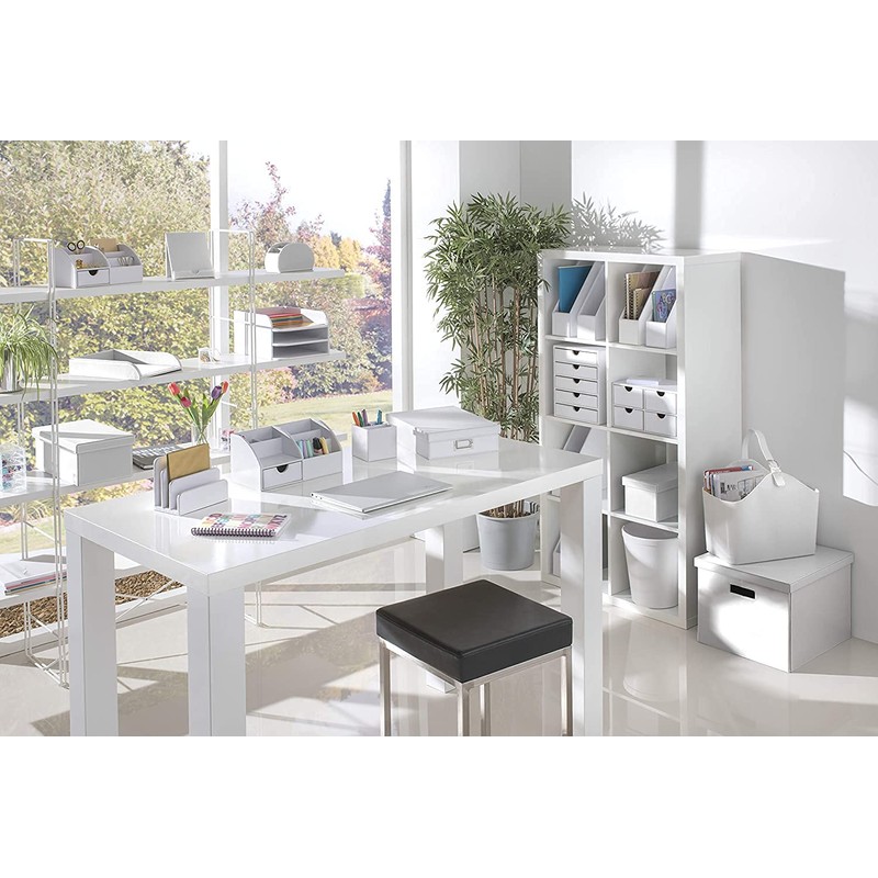 - Easily completing any desk, this white faux leather pen pot is perfect for storing pens, pencils, scissors etc and keeping your work area mess-free.
