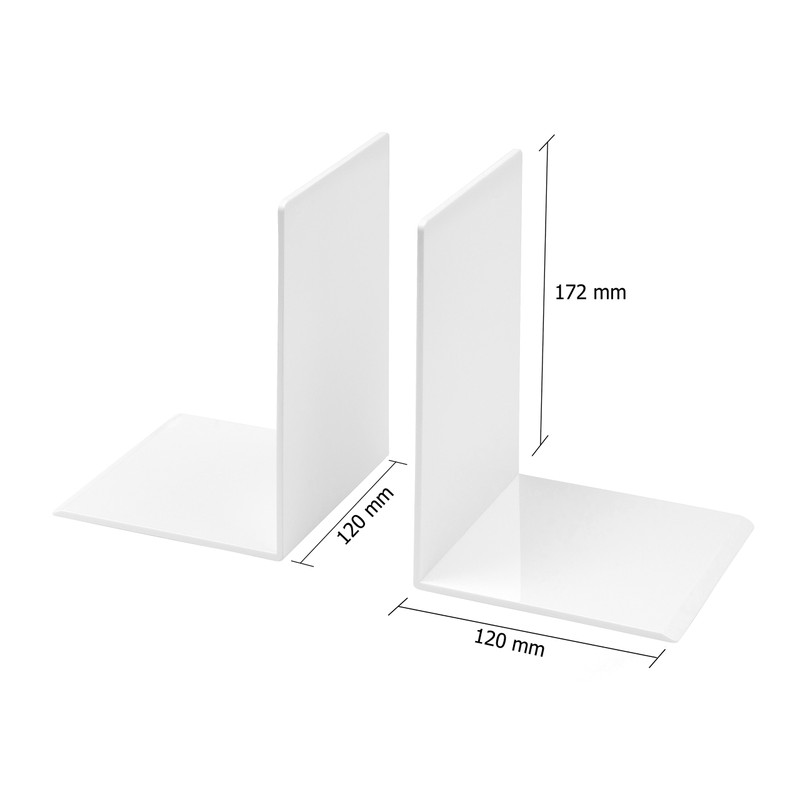 OSCO White High Gloss Medium Bookends | 1 Pair | Two Bookends | Clear Rubber Pads Non Slip | H17.2 x W12 x D12 cm
