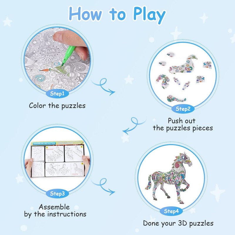 - 🎁【KIDS Puzzle HANDMADE PACK】4 different types of 3D puzzles, 12 watercolor pens, create your own 3D model. Kids can assemble and color these puzzles by themselves. Hours of exciting educational and creative fun for kids and adults. One of the best gifts for girls and boys 6 7 8 9 10 12 years old