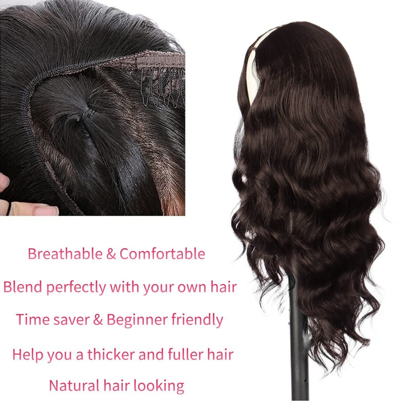 Oseti Body Wave Synthetic Half Wigs for Black Women V Shape Wigs No Leave Out, Synthetic No Leave V Part Wigs with Clips in Half Wig Scalp Protective Thin Part Wig 24inch (4#)