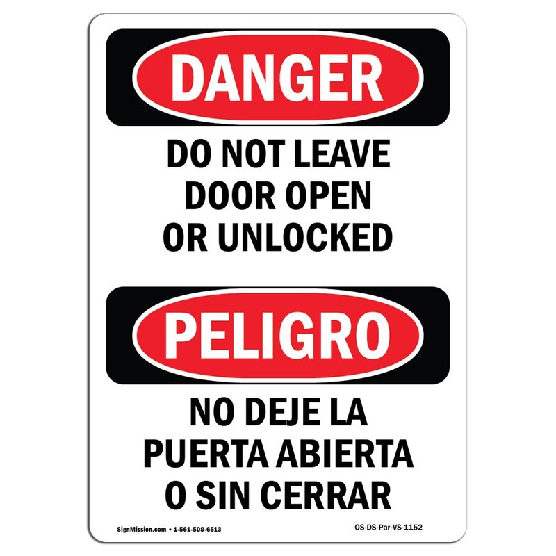 OSHA Danger Sign - Do Not Leave Door Open Or Unlocked Bilingual | Aluminum Sign | Protect Your Business, Construction Site, Shop Area | Made in The USA