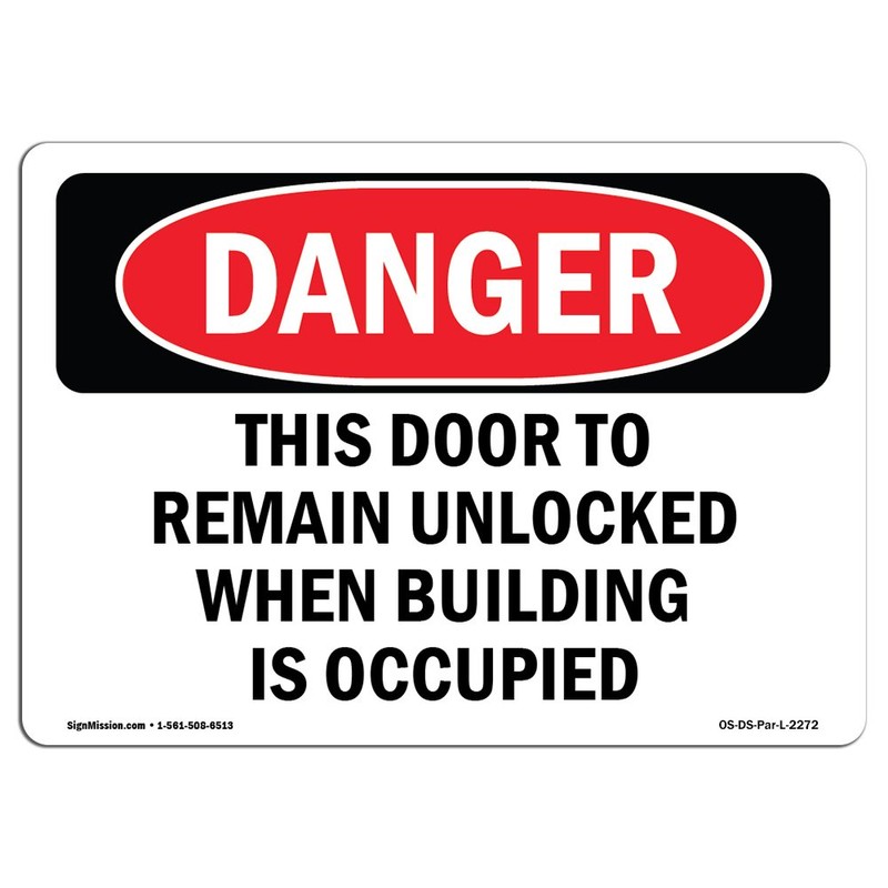 OSHA Danger Sign - This Door to Remain Unlocked When Building | Aluminum Sign | Protect Your Business, Construction Site, Shop Area | Made in The USA