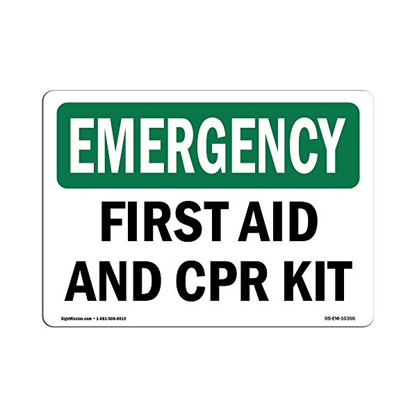 OSHA Emergency Sign - First Aid and CPR Kit | Rigid Plastic Sign | Protect Your Business, Construction Site, Warehouse & Shop Area | Made in The USA