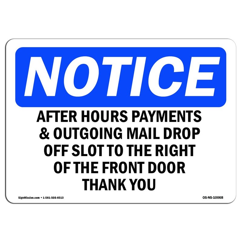 OSHA Notice Sign - After Hours Payment & Outgoing Mail Drop | Rigid Plastic Sign | Protect Your Business, Work Site, Warehouse & Shop Area | Made in The USA