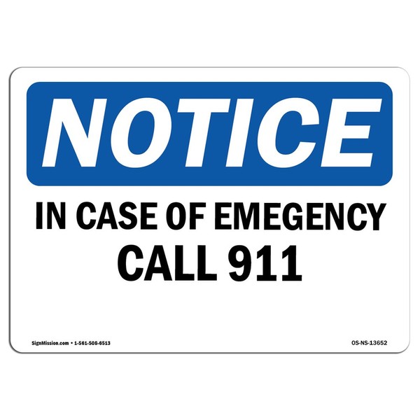 OSHA Notice Sign - in Case of Emergency Call 911 | Rigid Plastic Sign | Protect Your Business, Construction Site, Warehouse & Shop Area | Made in The USA