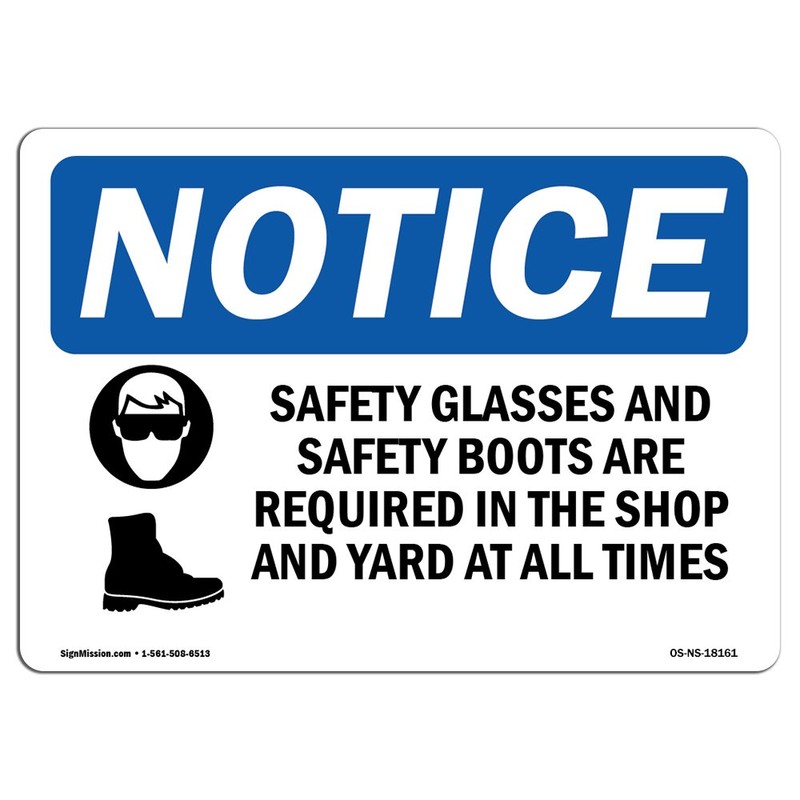 OSHA Notice Sign - Safety Glasses and Safety Boots | Aluminum Sign | Protect Your Business, Construction Site, Warehouse & Shop Area | Made in The USA