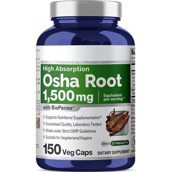 Osha Root 1500mg 150 Caps Non-GMO\Gluten Free\Bioperine Ligusticum porte