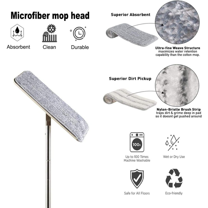 - Ultra-fine woven microfiber head that more effective lifts dirt and retains water than cotton or disposable spray mop refills.