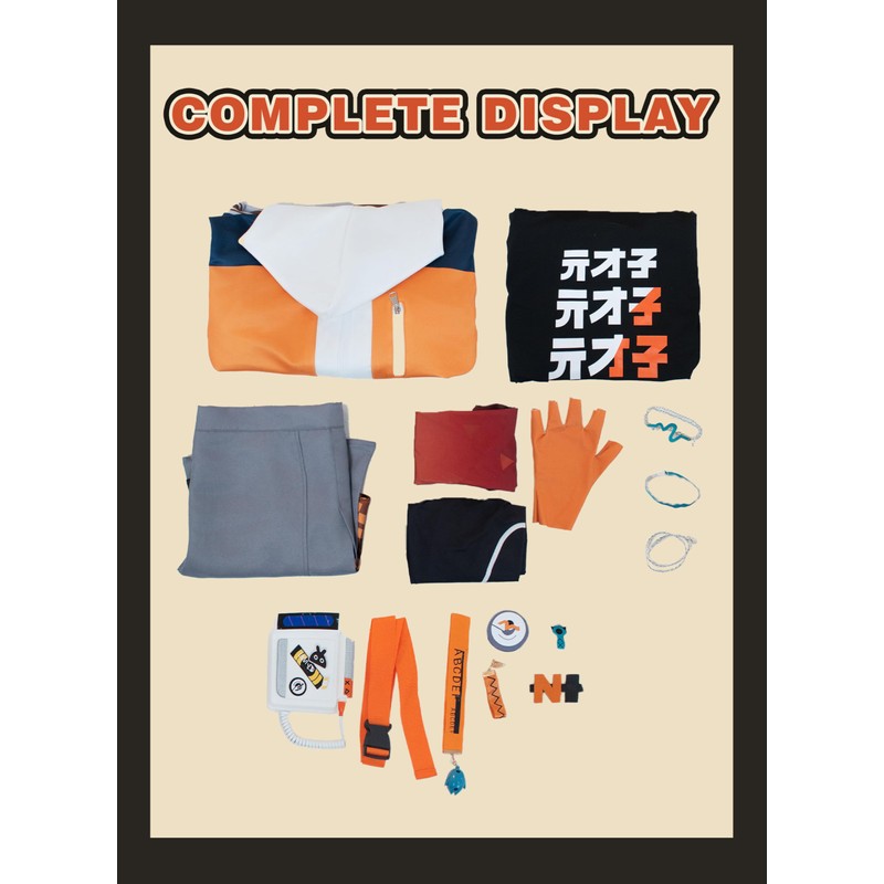 - Set Includes: Top, hooded jacket, shorts, gloves, belt, leg socks, badge, hair clip, earrings, necklace, waist accessory, bracelet.