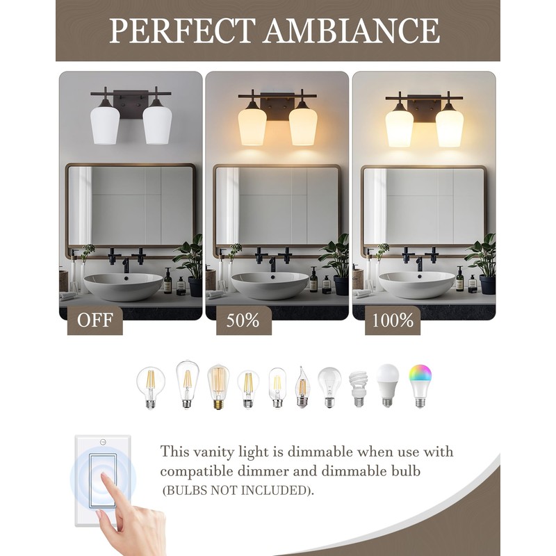 - Unique Design: The design of the 2 light bathroom vanity light is inspired by red wine glasses, frosted glass lampshade is the perfect option for brightening up any place in your home. The bronze vanity light easily to match any modern, traditional, or farmhouse style decor.