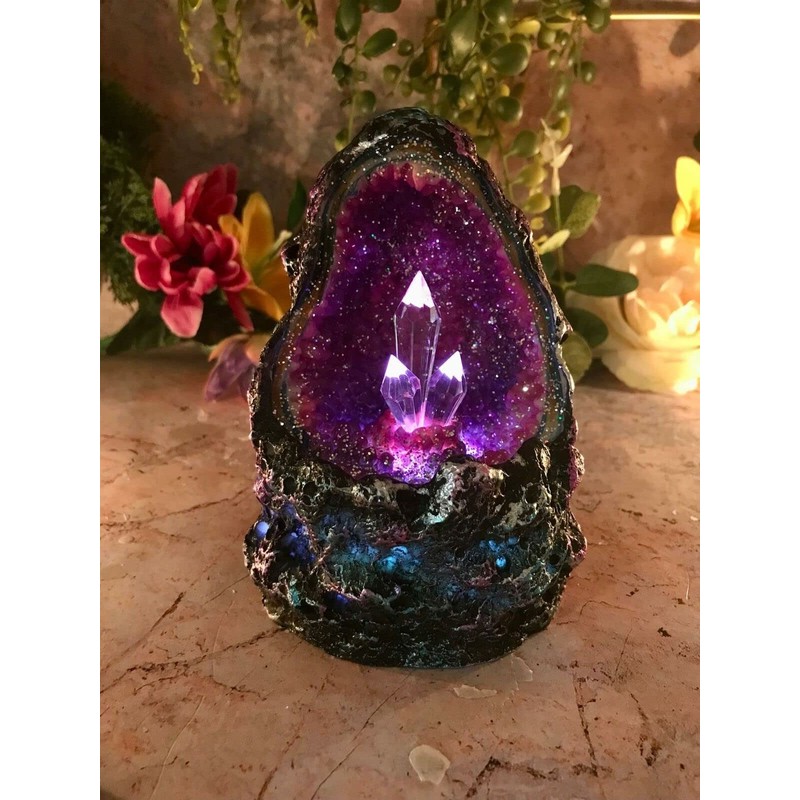 Osiris Trading UK Crystal Cavern Colour Changing LED Geode Lamp, Amethyst Purple