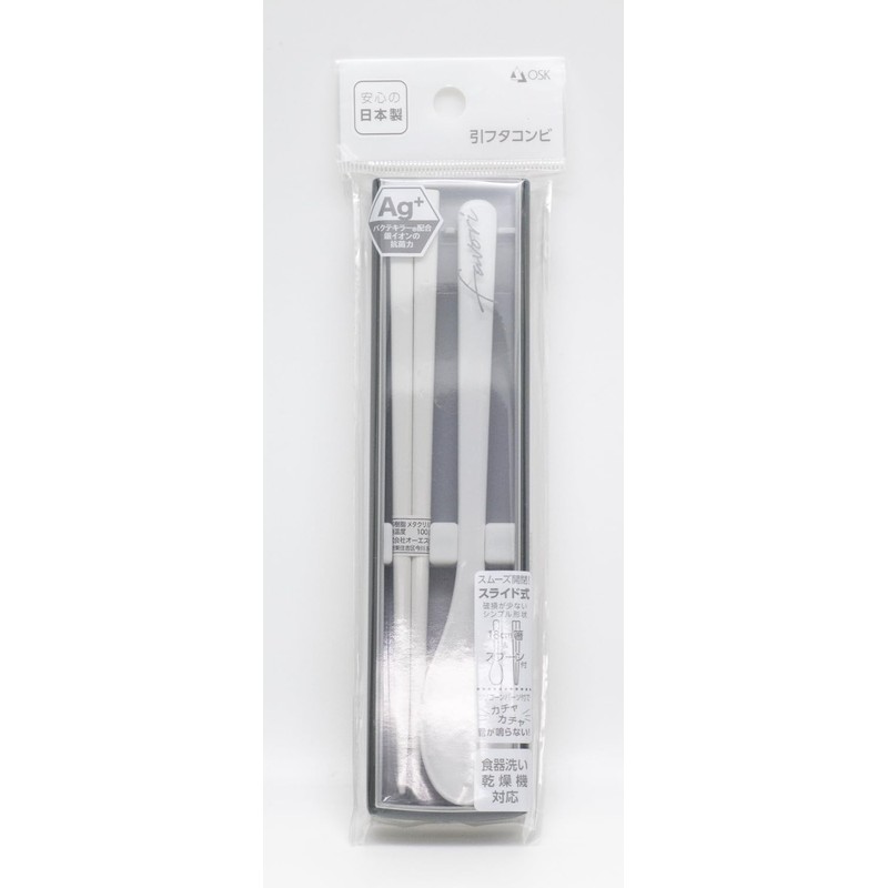 • 2-piece chopsticks and spoon cutlery set. Comes with silicone parts that do not clatter sounds. Sliding type for easy opening and closing. Antibacterial additives. The antibacterial power of the silver ions inhibits the growth of bacteria on the resin surface. Antibacterial (antibacterial treatment: case body, chopsticks, spoon, antibacterial agent type: silver, inorganic antibacterial agent)