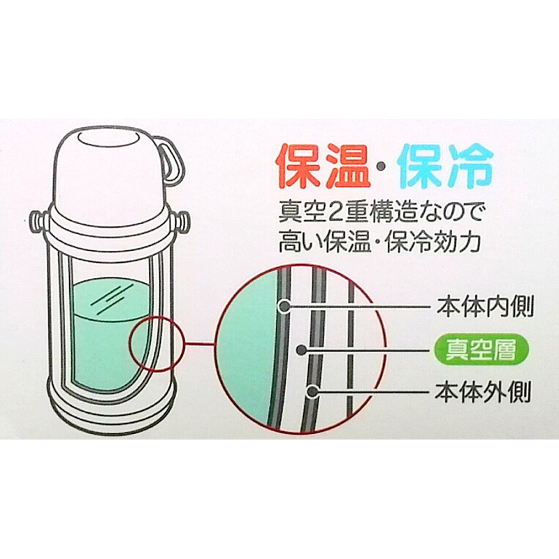 • [Material and processing during] bottle interior: Stainless Steel Body: Stainless steel (acrylic resin paint), cups, bottle: Polypropylene Washer: Silicone rubber heat insulating effectiveness: over 42 degrees (24 hours) 71 degrees or more (6 hours) Cold Effectiveness: 9 degrees or less (6 hours)