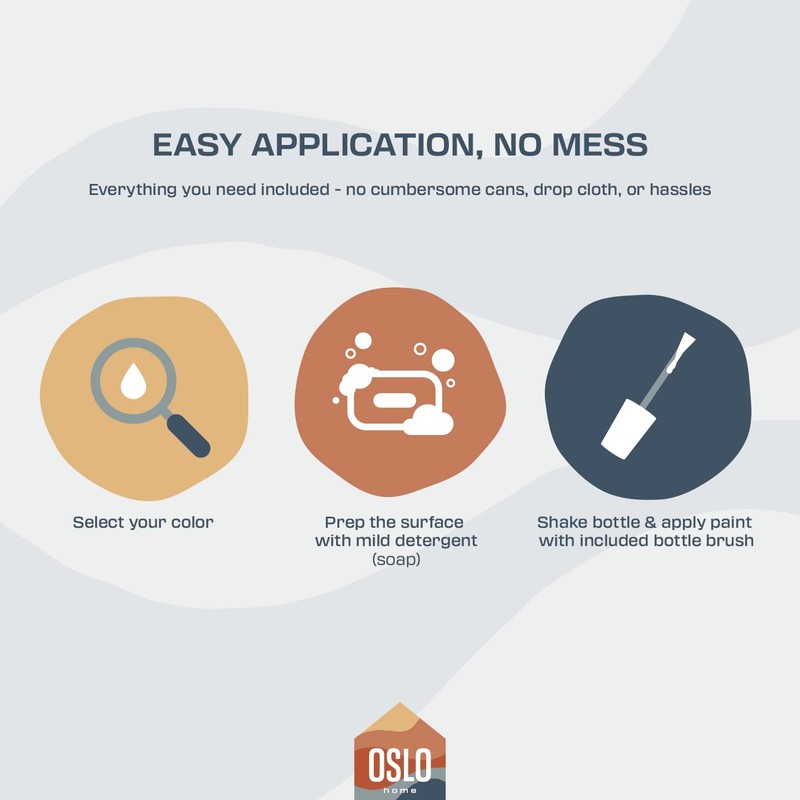 Revive your spaces in minutes with Oslo Home's Touch-Up Paint! From kids' playful scuffs to everyday wear and tear, this self-priming formulation covers it all, drying quickly and effortlessly with its convenient bottle-in-brush design. Skip the hassle of setup and mess—everything you need is in this all-in-one solution. Say goodbye to color guesswork—the curated palette, inspired by popular shades of white, ensures a seamless match every time. Durable, robust, and remarkably easy to clean, this touch-up paint is your go-to solution for a flawless finish. Made in the USA with a low odor formula, it brings convenience and quality right to your fingertips!