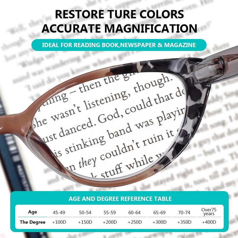 - 4 Pcs Reading Glasses:You can get 4 pcs of women reading glasses of 4 different colors (pink, red, blue and brown) at a great price, you can choose the favourite color for your own use to different dressing up or share the others with your friends and family members