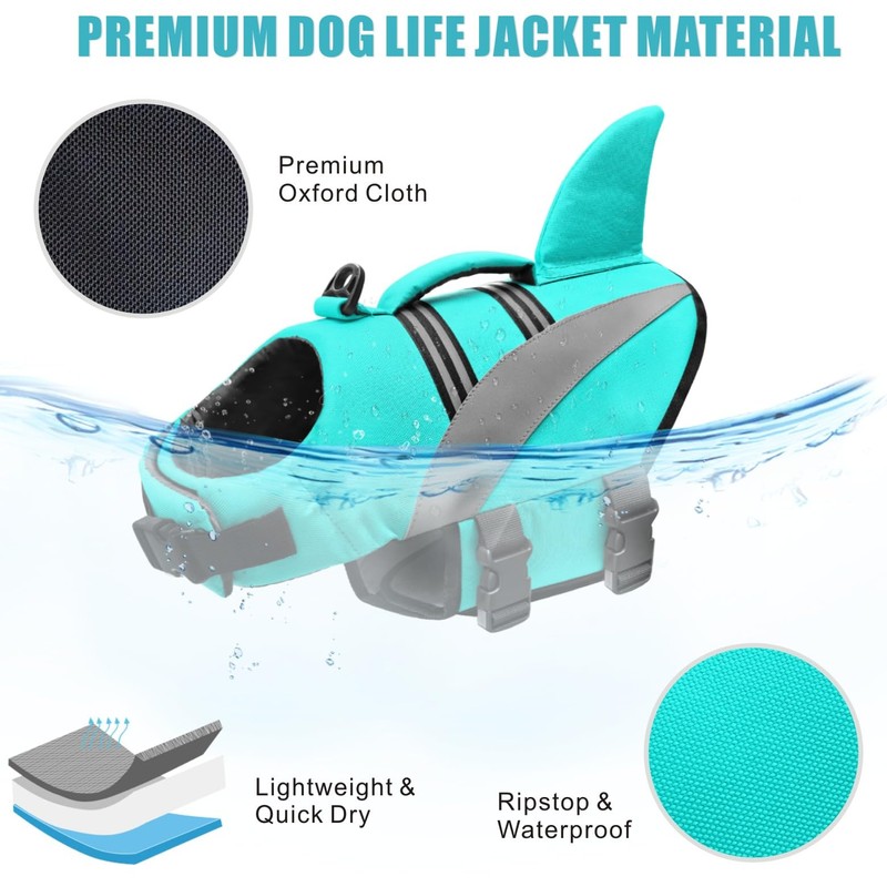 - Conveniently juicy handle easy recue: the dog swimming coat has a sturdy rescue handle on the top, makes it easy to hold your dog back and lift it out of the water and helps if there is ever a "dog overboard" situation. Attach a leash to the D-ring hook on the back to keep your pet with you at all times and easy to find your pet with the reflective design.