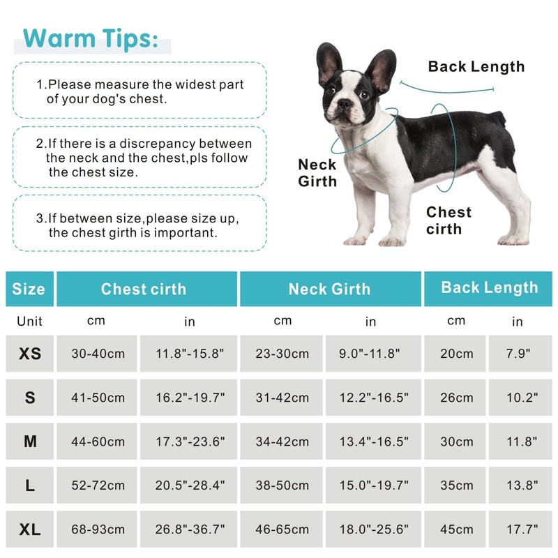- Measurements before purchase: XS, S, M, L, XL, fits almost all types of breed furry friend, such as teddy, chihuahua, beagle, poodle, bulldog, schnauzer, etc. Please measure your dog's chest cage on the DEEPESTE part; do not judge the size of your dog by weight or standard of other brands; if your dog's measurements are between sizes, please choose The next next