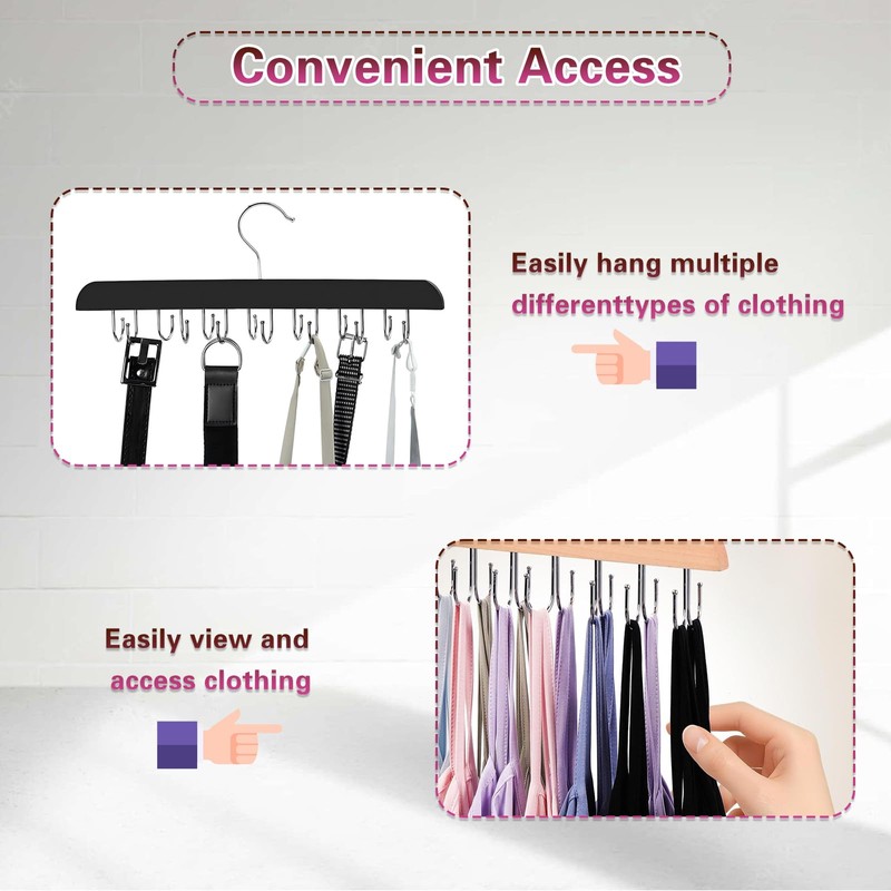 - Multi functional: These hangers are perfect for use in closets, dormitories, apartments, and other places at home, designed to help you organize and arrange your space in an orderly manner. Especially suitable for bras, tank tops, tie rack, belt hanger for closet, and other accessories, while avoiding tangling and freeing up space to hang more clothes in the wardrobe