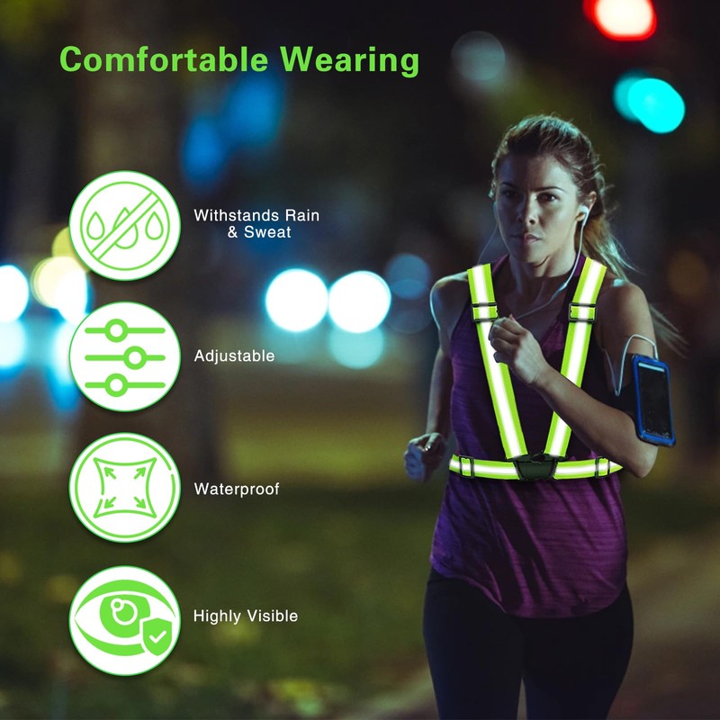 • Multi-Scenario Versatility: This high visibility vest withstands rain, sweat, and snow—ideal for year-round running accessories. Perfect as safety lights for walking at night, jogging, hiking, festivals, or construction work, adapting to any low-visibility activity