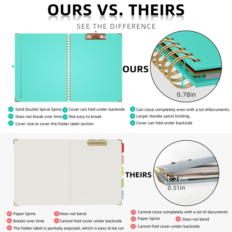 - 【powerful functions】Low-profile clip arc design make it easy gripping and extraction paper, holds up to 80-100 sheets paper. Clip board has a Hidden retractable hanging hole on the top, Easy to hang. Pen Loop for quick, easy storage. Double-loop Metal Spiral have the ability to flip the cover to the backside and use it like a clipboard, no creases and cracks to offer durability. Elastic closure, The elastic band keeps the portfolio closed and prevents contents from getting damaged.
