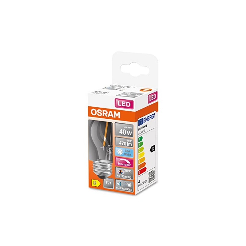 Osram OSRAM Superstar dimmbare LED-Lampe mit besonders hoher Farbwiedergabe (CRI90) fr E27-Sockel, Filament-Optik ,Kaltwei? (4000K), 470 Lumen, Ersatz fr herk?mmliche 40W-Leuchtmittel, dimmbar, 1-er Pack