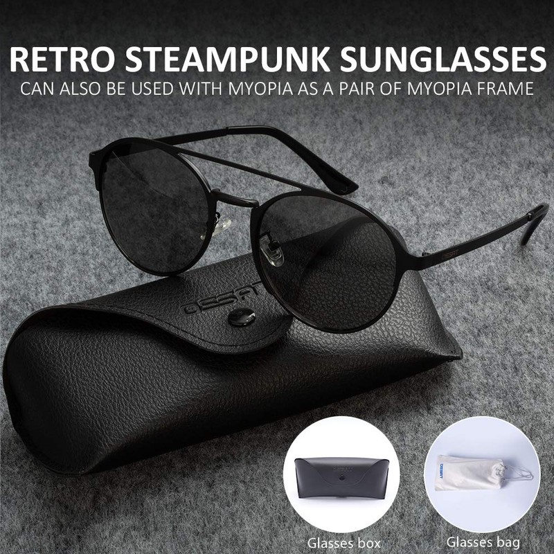 - Classic retro style: Steampunk and fashion design, high-end metal frame texture and excellent manufacturing technology in details ensure both of aesthetics and high quality of this sunglass.