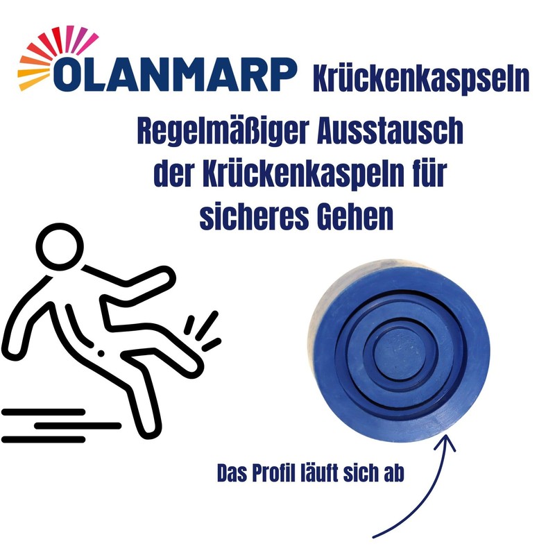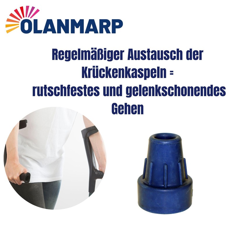 - Safe and non-slip walking: thanks to the non-slip nature of the crutch capsules, you have a secure grip even on smoother surfaces. So you can rest assured that you do not slip when walking with your walking aids and thus maintain your stability. Note: Please use the blue crutch capsules with steel insert carefully in wet area.