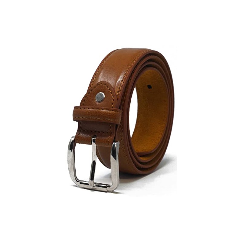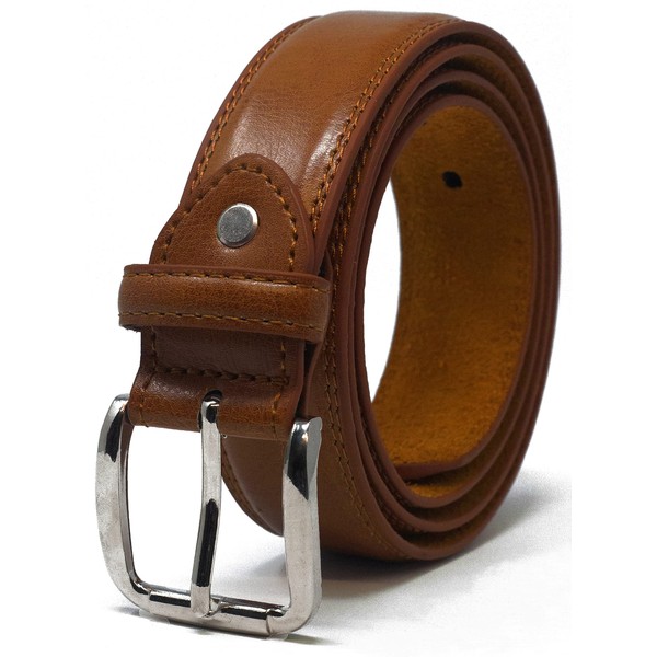 Ossi Men's Double Stitched Leather Lined Trouser Belt, Dark tan