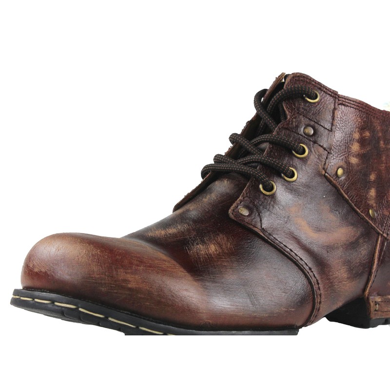 OSSTONE Moto Boots for Men Fashion lace-up Leather Chukka Boots Casual Shoes OS-6015-2-retro-brown-10.5-R,Retro Brown, Men's Size US10.5
