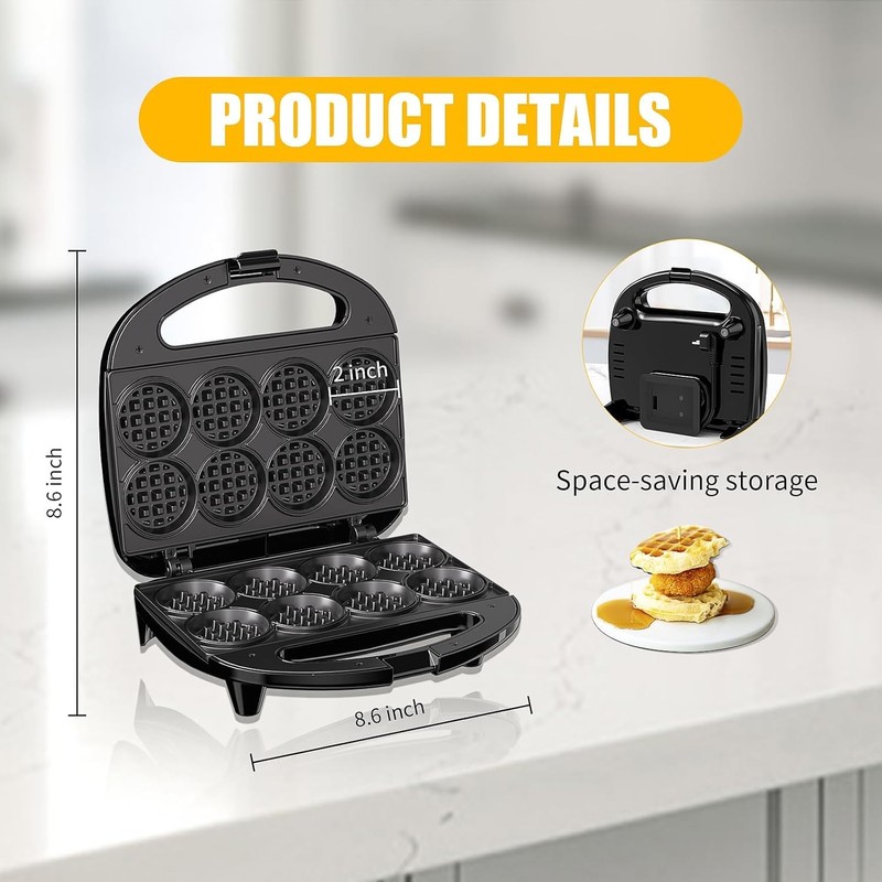 - Make 8 Mini Waffles at Once – This 8*2 inch waffle maker lets you cook up to 8 delicious mini waffles at a time, perfect for family breakfasts or party snacks.