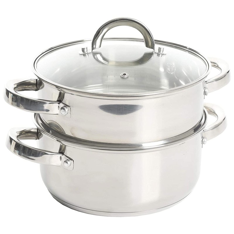 3 qtr. Stainless Steel steamer for use on your stove top. Perfect for steaming vegetables and cooking rice at the same time as well as re-steaming tamales as leftovers. Smaller size than traditional stockpot steamers for smaller gatherings and space-saving. Dual purpose as Dutch oven with glass lid. 3QT Casserole 8.5' in diameter x 3.7' Height = Piece by itself, 3QT Steamer 8.5' in diameter x 3.6' Height = Piece by itself, With Glass lid 8.5' in diameter (you can use for both the pot and the steamer), Stackable measurements = 8.5' in diameter x 6.20' Height = Stackable Casserole and Steamer.