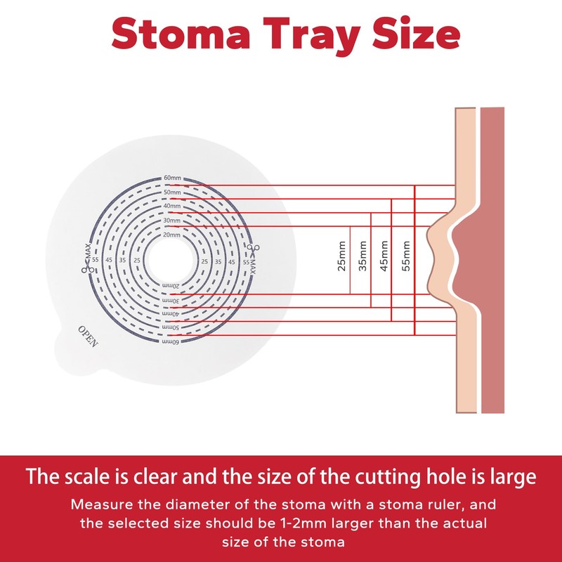 - CUT-TO-FIT - Our colostomy bag is upgrade the scale from (20mm) to (65mm), with clear scale, you can accurately cut as you need and fit your stoma perfectly, ideal for stoma that is still changing sizes.