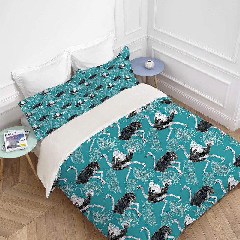 Ostrich Bedding Set Bird Duvet Cover for Adults Kids Twin Full Queen King Size Comforter for All Season Rustic Teal Ostrich Bird Quilt Cover Decorative Soft Bedding Set with 2 Pillowcases