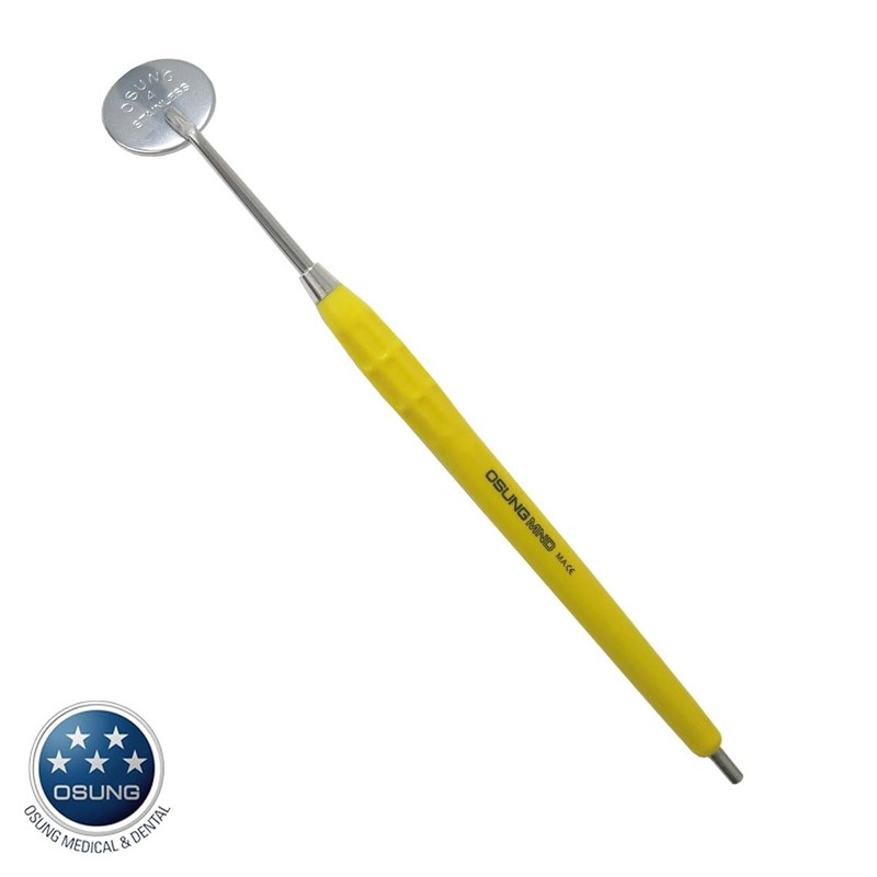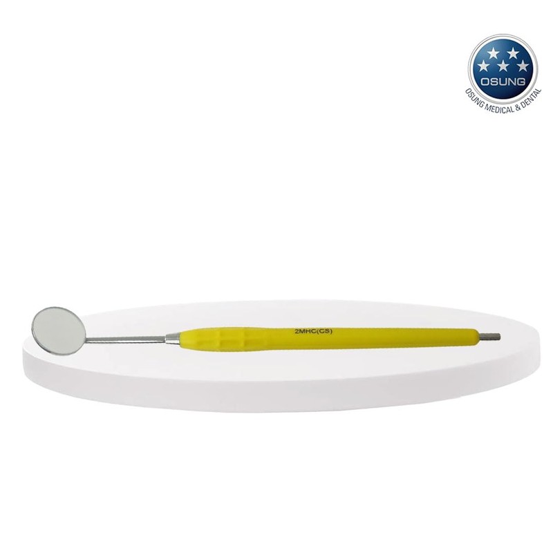 OSUNG Dental Mirror, Softgrip Handle, Cone Socket, Yellow Handle w/mirror 2MHC3 Pack of 2