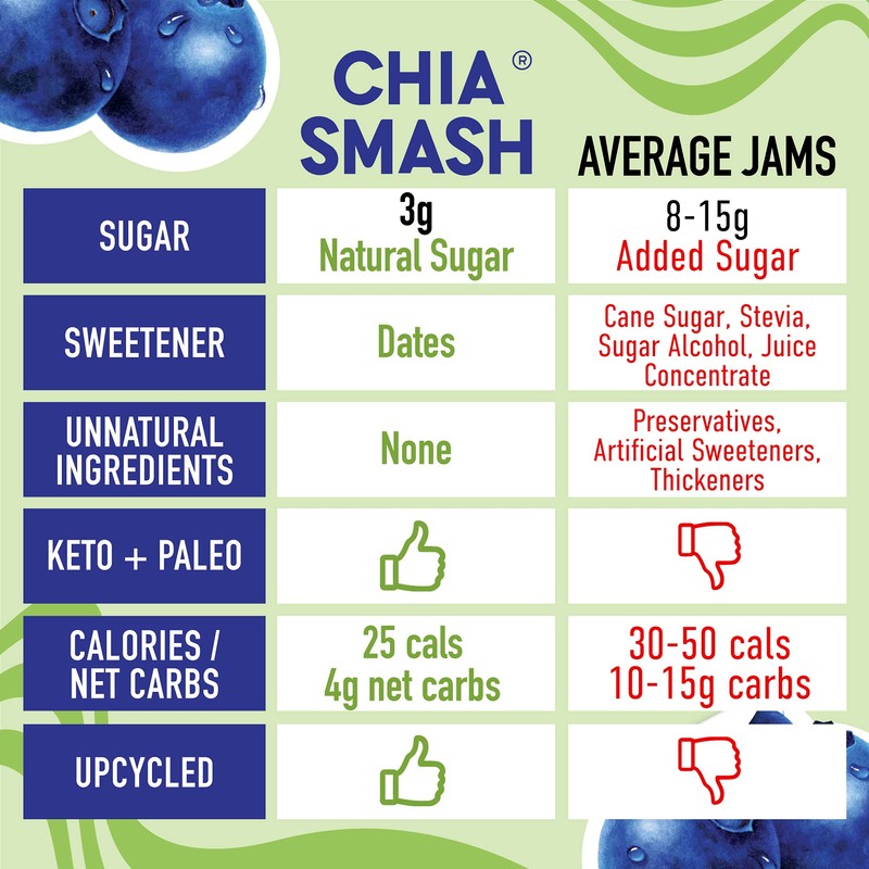- LOW CARB KETO + PALEO FRIENDLY - Enjoy jam without the sugar guilt, preservatives, or dietary restrictions. Chia Smash is sweetness without the sacrifice