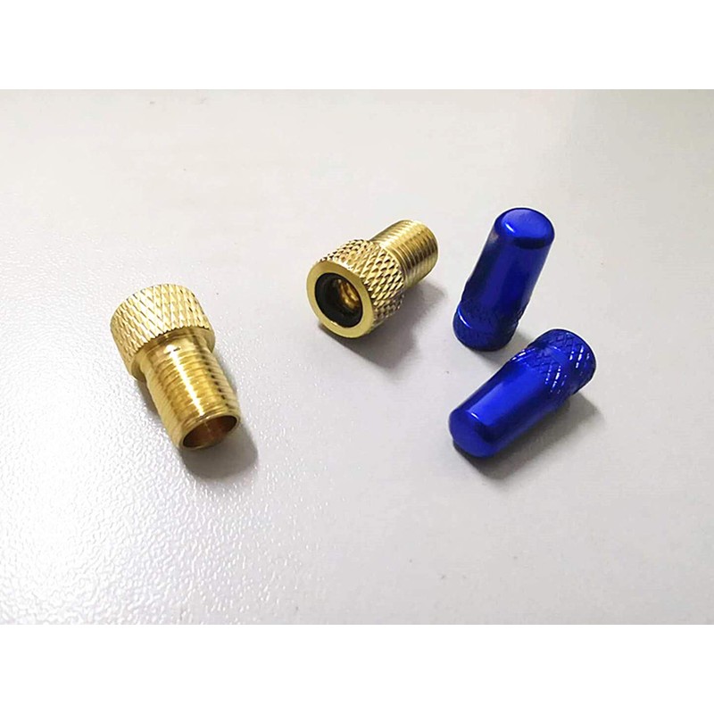 • Package Included Set of 4 :2x Blue Alloy Presta Valve Caps + 2x Yellow 100%Copper Presta to Schrader Bicycle Bike Valve Adaptors