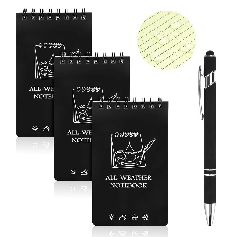 - 【Waterproof Notepad】This small spiral pad features all-weather paper with a unique waterproof layer that won't break, even in wet conditions. It is waterproof, sweatproof, greaseproof and mudproof, and even prevents accidental laundry accidents from staining the notepad, your notepad will remain safe and clear, allowing you to capture ideas, inspirations and memories without worry.