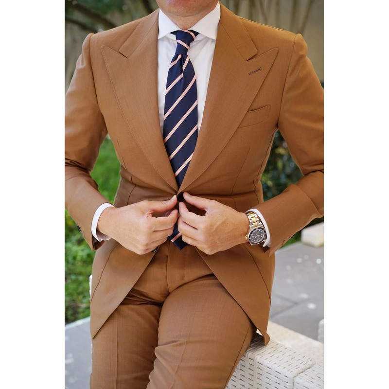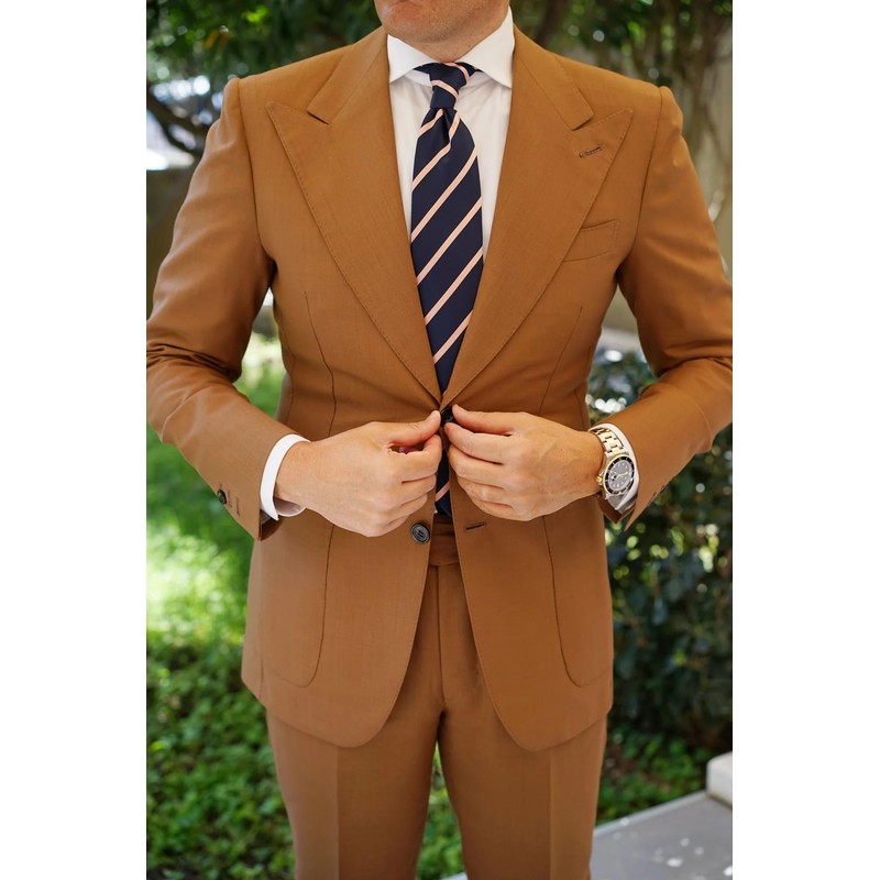 OTAA Navy Blue with Peach Stripes | Neckties for Men|Designed by the Brothers at