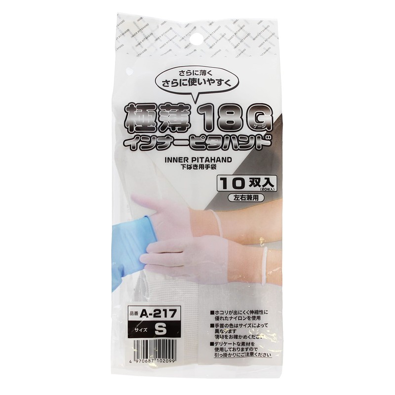 Otafuku Gloves, Inner Pita Hand [Ultra Thin 18 Gauge Nylon Gloves for Underwear] A-217 S Size [Set of 10 Pairs] White