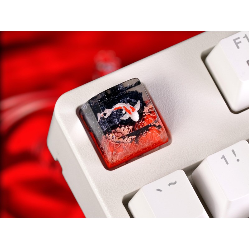 OTAKU KRAFT Red Koi Scarlet Shadow Background Ocean Keycap Custom Keyboard Key caps Cute Keycap Artisan Keycaps Aesthetic Key Cap Ocean Gifts Cherry MX Mechanical Keyboard SA Profile 1U