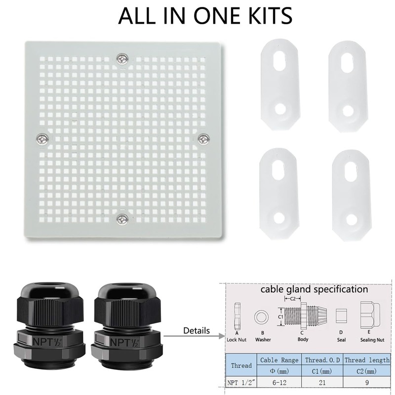• 【Money Saving Junction Box Sets】 The junction box includes a mounting plate, 4 Wall Brackets, and 2 cable glands.The ABS project boxes can be drilled and shaped easily without cracking, so it’s almost suitable for your all DIY projects.