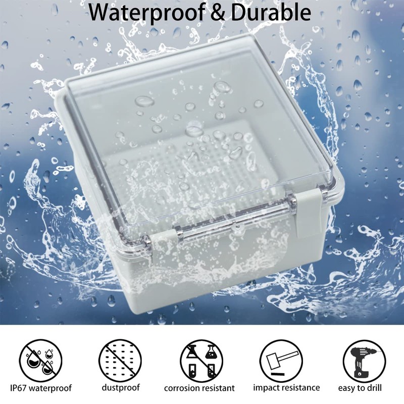 Otdorpatio Junction Box, Hinged Clear Cover IP67 Waterproof ABS Project Box w...