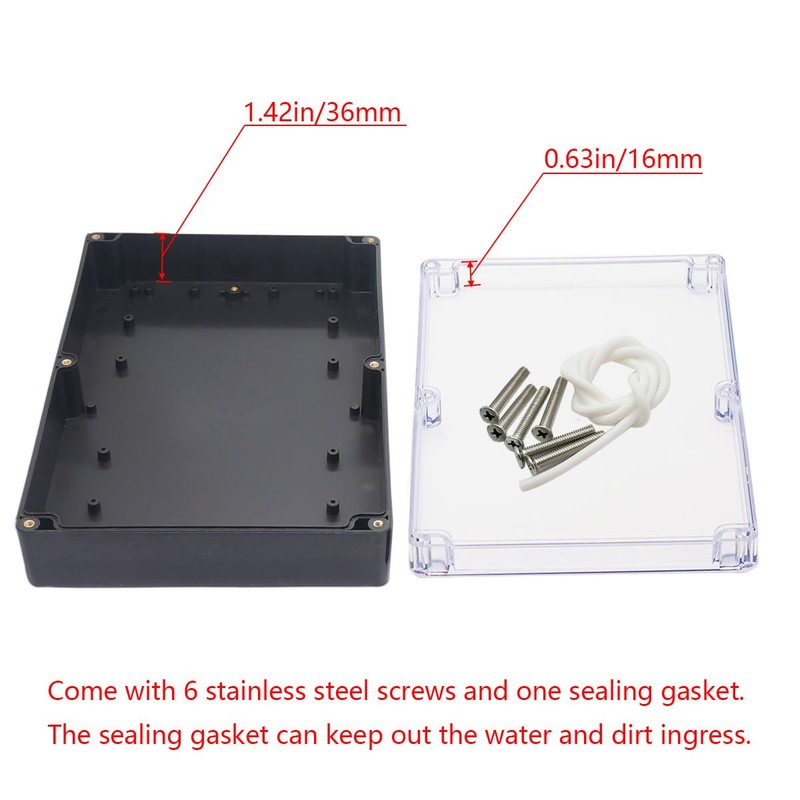 • 【Size】- Outer size of the project box: 10.35"x 7.17"x2.36"(263 x 182 x60 mm); Inner size of the project box:10.04" x6.93" x 2.04" (255 x176 x52mm)