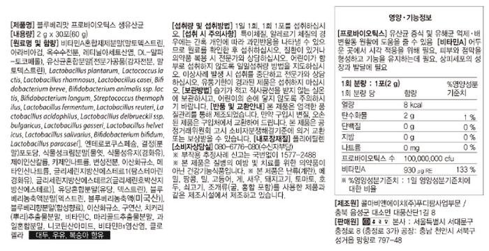 Other Chong Kun Dang Lactic Acid Bacteria Probiotics Blueberry Flavored Live Lactic Acid Bacteria 180 Packets, 6 Month Supply for the Whole Family / 기타 종근당 유산균 프로바이오틱스 블루베리맛 생유산균 180포 6개월분 온가족용
