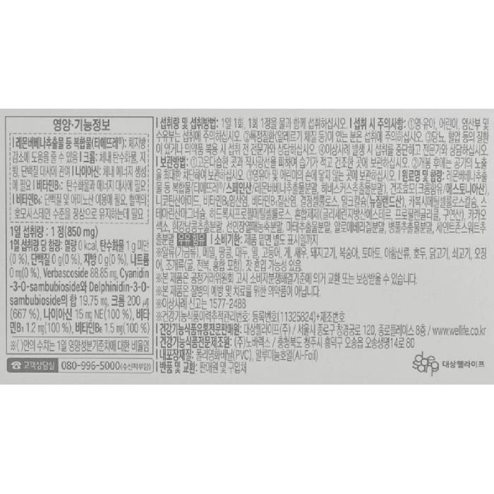Other Metabolic Diet Lemon Verbena Extract 850mg x 20 Tablets 1 Box / 기타 메타볼릿 다이어트 레몬버베나 추출물 850mg x 20정 1박스