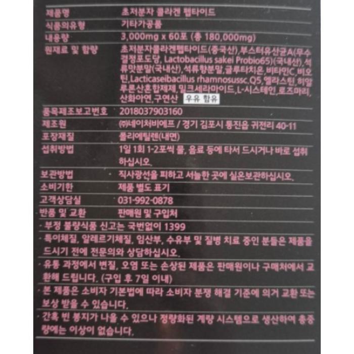 기타 초저분자 어린콜라겐 펩타이드 비오틴 글루타치온 저분자 60포 2박스 (4개월분)