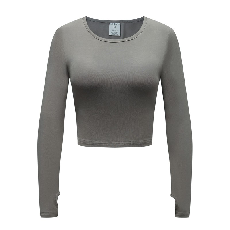 - Long sleeve crew neck crop top with thumb hole, works perfectly on its own or as a layer matching with blazers, cardigans, coats, jackets or sweaters