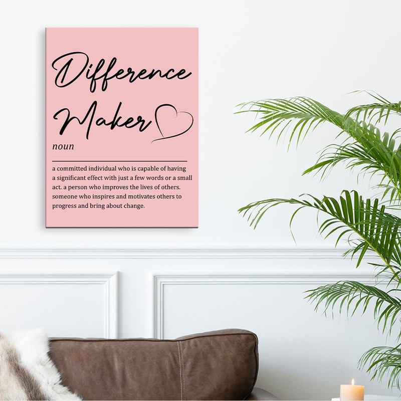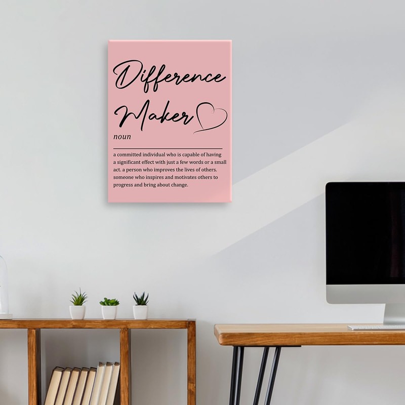 OTINGQD Inspirational Office Wall Decor,Difference Maker Definition Canvas Wall Art,Pink Office Wall Decorations,Difference Maker Gifts