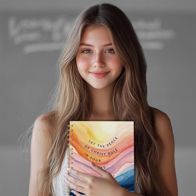 OTKBD Boho Sunshine River Christian Notebook, Bible Scripture Journal, Christian Religious Gifts for Women, Church Notes Notebook Journal, Let The Peace of Crist Rule in Your Heart, 5.5x8.3 Inch