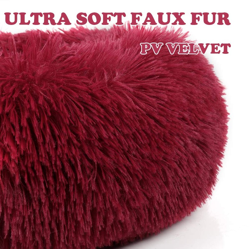 otoez Kitten Puppy Bed Small Round Dog Cat Beds Anti Anxiety Plush Pet Calming Donut Bed with Non-Slip Waterproof Bottom, Washable (19.7", Dark Red)